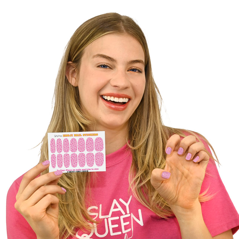 - Emoji Nail Stickers: 14 stickers (10 stickers-one for each nail, plus 4 extra for sizing and any mistakes in applying). Just stick on, trim with scissors and then file the edges. Latex free.Β