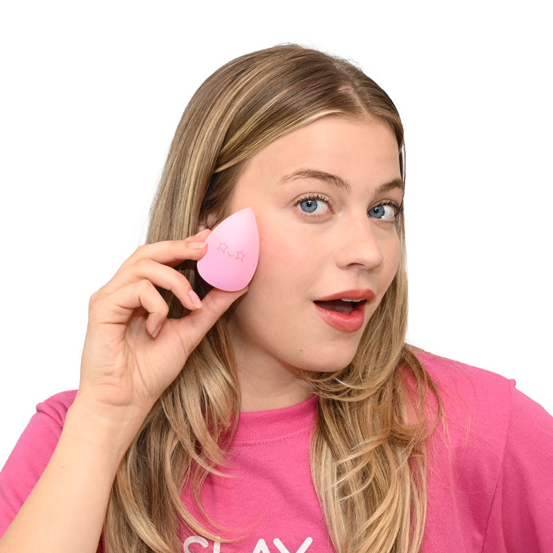 - Pink Foam Beauty Blender with debossed emoji logo, made of latex-free foam measures 2.75 inches x 1.75 inches when dry and expands 1 inch when damp. Best used to apply liquid and powder foundations. Do not leave your blender in an enclosed area after use, let it dry in the open air. For cleaning we recommend a gentle soap and warm water to restore your blender.